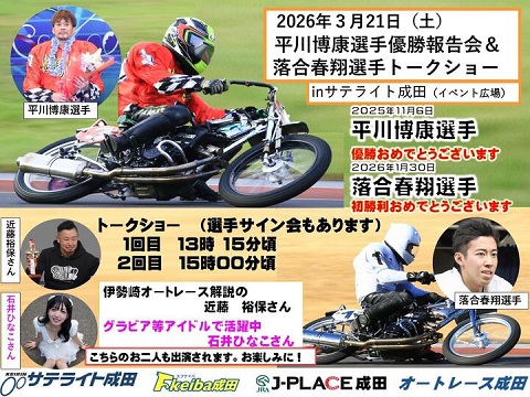 3/21(土)平川博康選手・落合春翔選手がオートレース成田に登場!(オートレース成田)