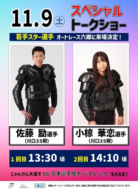 11/9(土)佐藤励選手・小椋華恋選手のスペシャルトークショーが開催されます!(オートレース六郷)