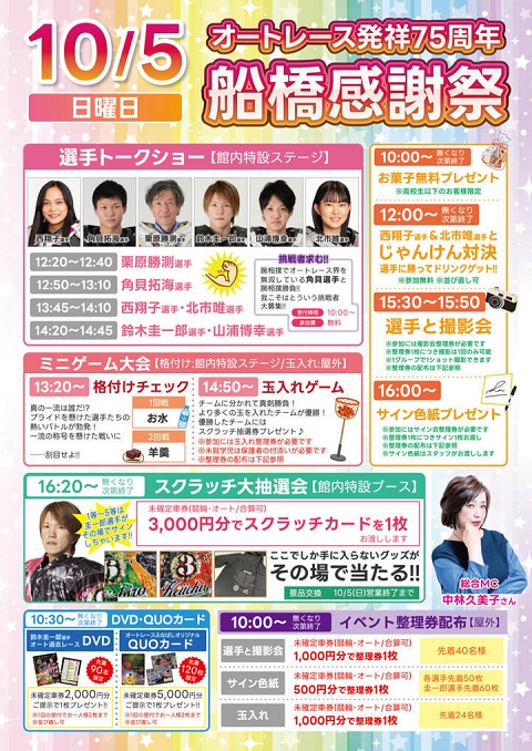 10/5(日)オートレース発祥75周年船橋感謝祭を開催します!(オートレース船橋)