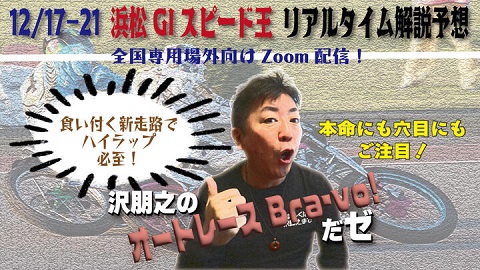 浜松オート・GIスピード王決定戦の期間中(12/17~21)、元浜松オート解説・沢朋之氏による解説予想が、全国専用場外ファンの皆様に向けzoom配信されます(全日全レースにて)。