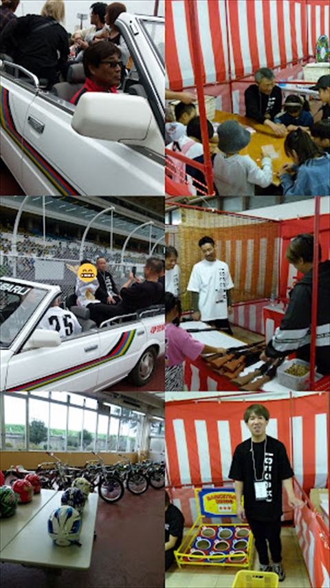 青山周選手・浅倉選手・伊藤真選手が現在使用中の競走車や、田崎選手や野本選手のヘルメットが展示されており、ファンのみなさんにとっては"撮影スポット"となっていました。